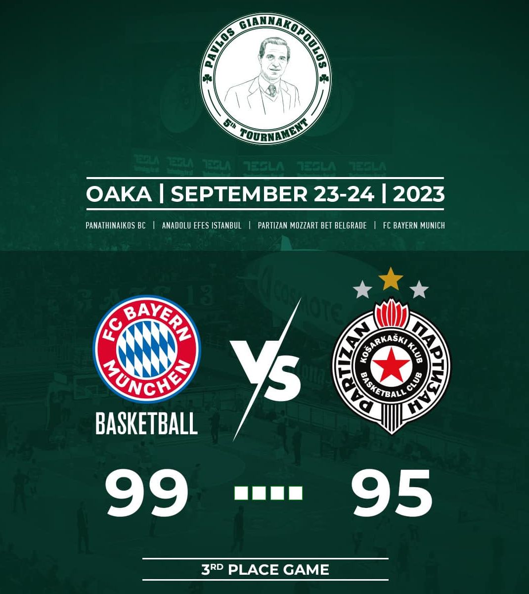 Στην 3η θέση του «Παύλος Γιαννακόπουλος» η Μπάγερν, 4η η Παρτιζάν