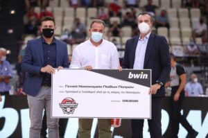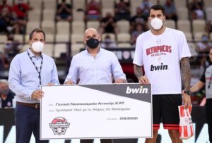 Επίσης, ο αρχηγός των “ερυθρόλευκων” Γιώργος Πρίντεζης μαζί με τον κ. Κωνσταντίνο Εφραιμίδη, CSR Manager της bwin Greece, μεγάλου χορηγού του Ολυμπιακού, παρέδωσαν στον κύριο Παναγιώτη Γιαννόπουλο, αναπληρωτή διοικητή του Γενικού Νοσοκομείου Αθηνών ΚΑΤ, υγειονομικό υλικό για την κάλυψη των αναγκών του νοσοκομείου.