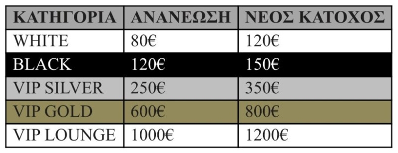 Οι κάτοχοι εισιτηρίου διαρκείας της σεζόν 2021-22, έχουν έως και το Σάββατο 10 Σεπτεμβρίου 2022 δικαίωμα να ανανεώσουν τη θέση τους σε προνομιακή τιμή.