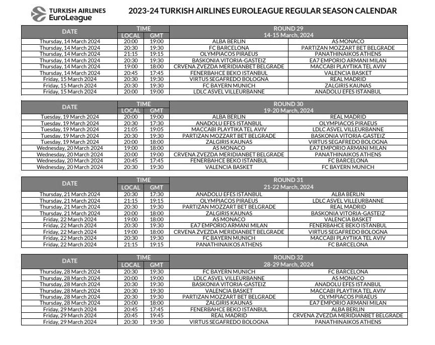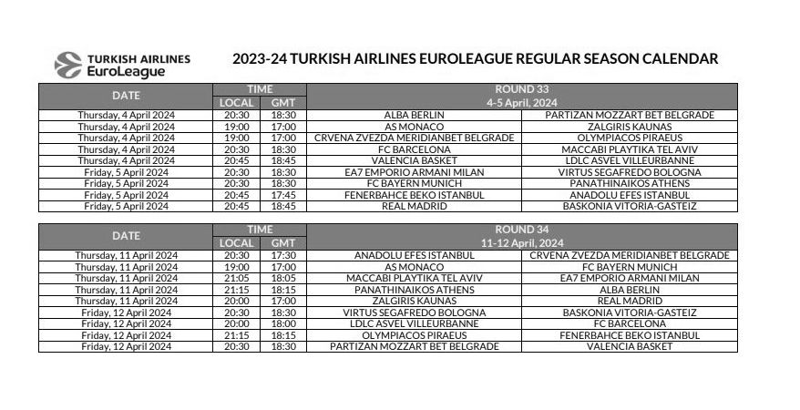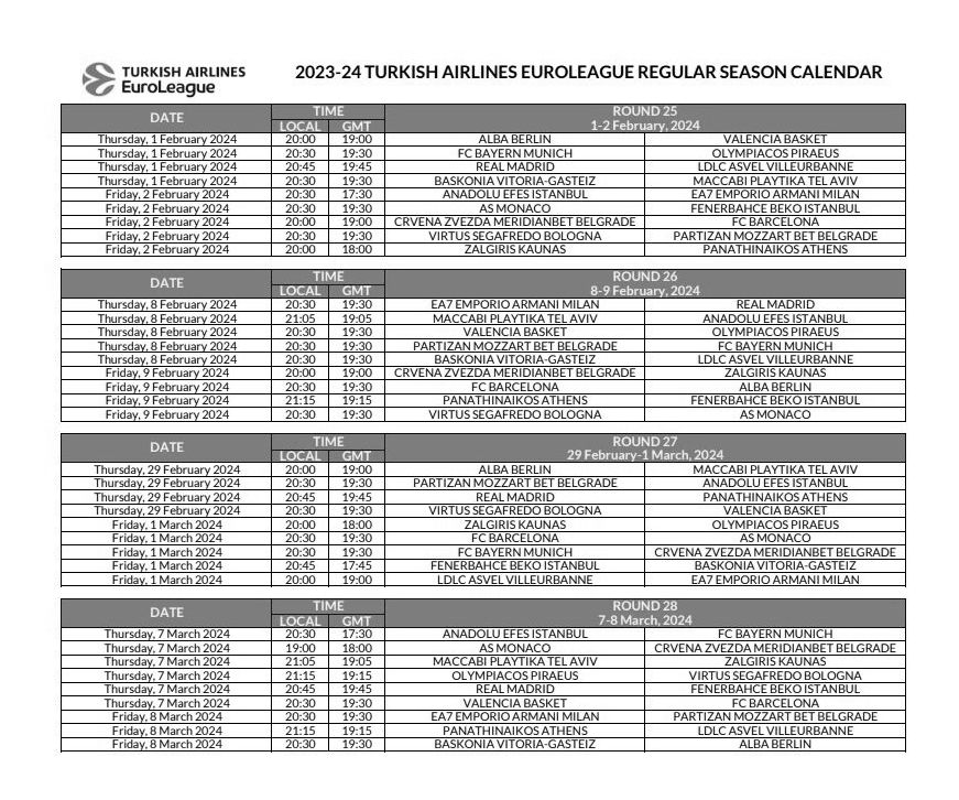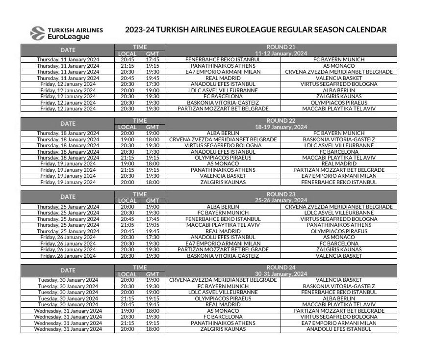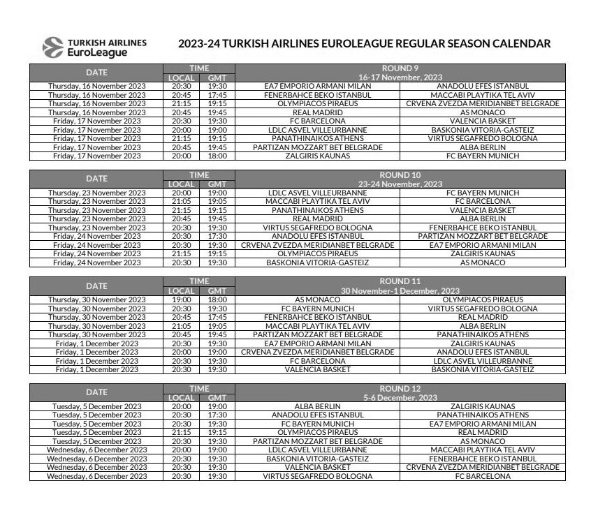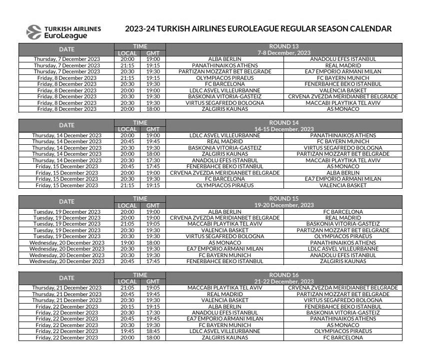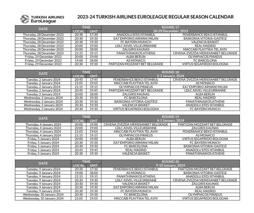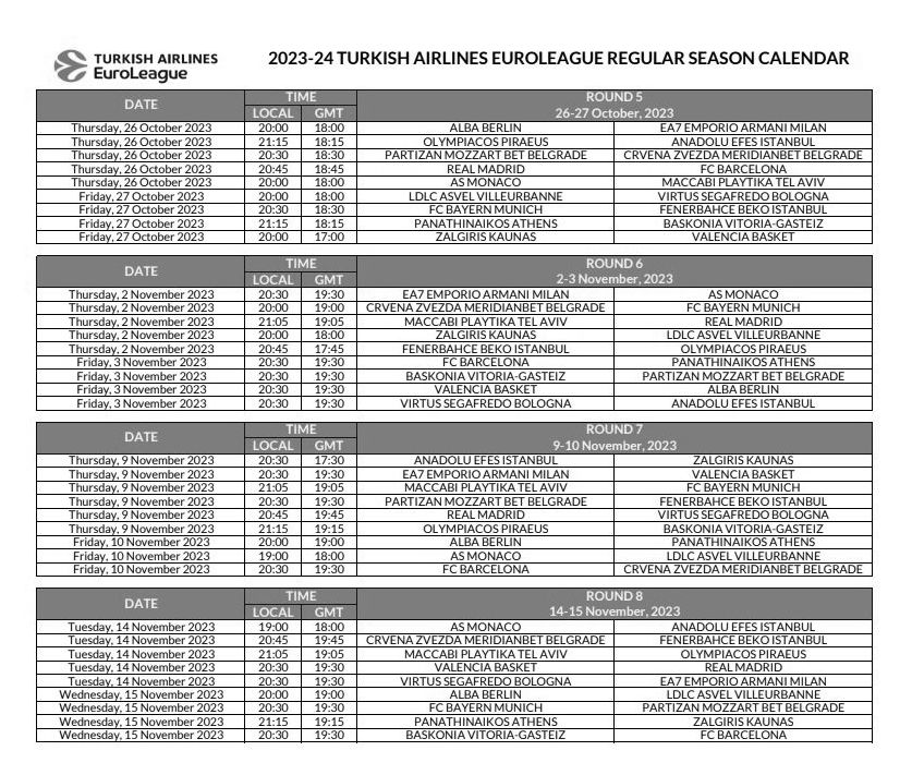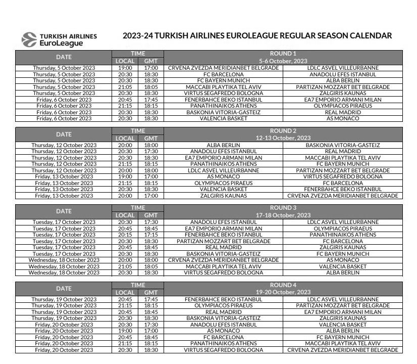 Η φετινή Ευρωλίγκα λοιπόν, θα αρχίσει στις 5 Οκτωβρίου, το ντέρμπι «αιωνίων» θα είναι την δεύτερη μέρα της 1ης αγωνιστικής δηλαδή στις 6 Οκτωβρίου ενώ η κανονική περίοδος θα ολοκληρωθεί στις 12 Απριλίου. Τέλος, η φετινή Ευρωλίγκα θα περιλαμβάνει οκτώ «διαβολοεβδομάδες» δηλαδή εβδομάδες με διπλά παιχνίδια.