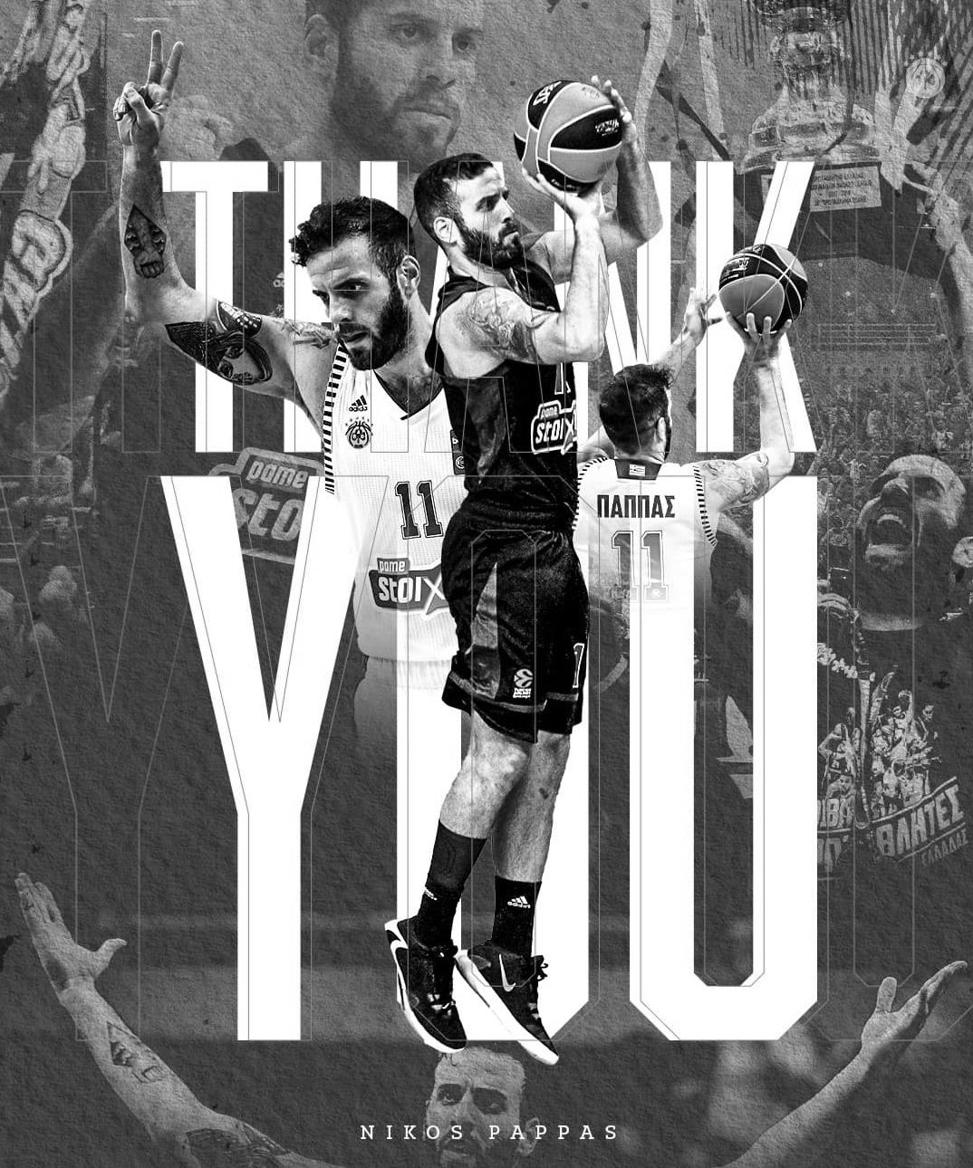 Μετά το τέλος της φετινής σεζόν ο Νίκος Παππάς αποκάλυψε πως βάζει τέλος στην καριέρα του ως παίκτης και έτσι σήμερα ο Παναθηναϊκός τον «αποχαιρέτησε» και επίσημα. Μετά λοιπόν, από 8 χρόνια ο διεθνής γκαρντ αποτελεί παρελθόν αγωνιστικά για τον Εξάστερο και η ΚΑΕ Παναθηναϊκός με ανάρτησή της στα social media τον αποχαιρέτησε αναφέροντας χαρακτηριστικά: «8 χρόνια, 5 Πρωταθλήματα, 5 Κύπελλα και πολλές μοναδικές στιγμές με την πράσινη φανέλα. Νίκο Παππά, σε ευχαριστούμε για όλα! Θα είσαι για πάντα ένας από εμάς!».