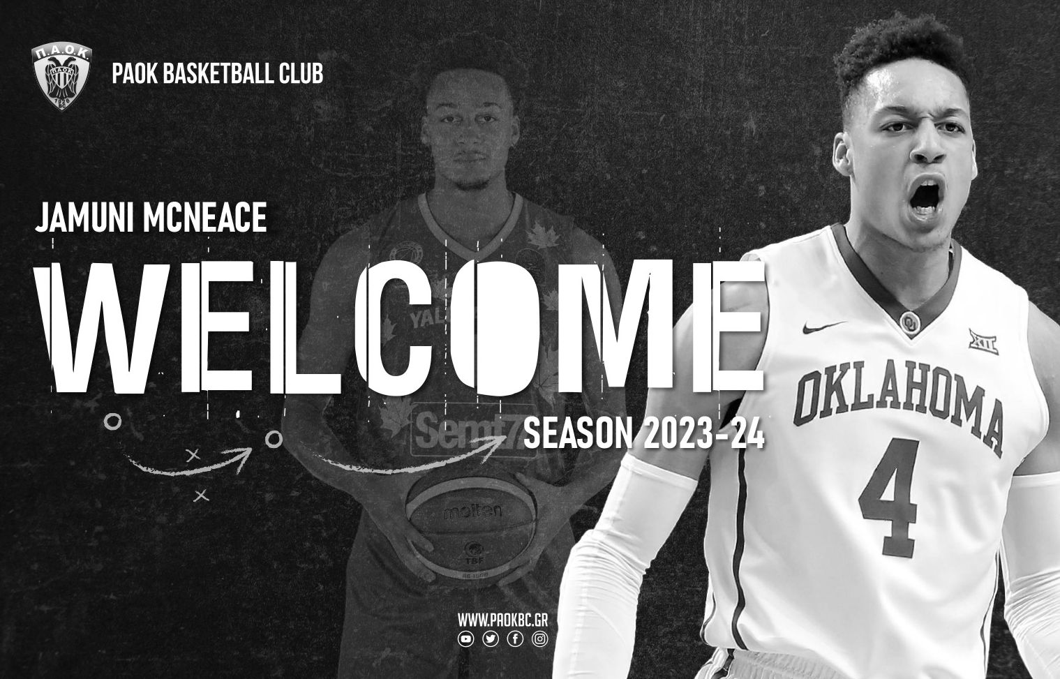 Αναλυτικά η ανακοίνωση της ΚΑΕ ΠΑΟΚ, αναφέρει: «Η ΚΑΕ ΠΑΟΚ mateco ανακοινώνει τη συμφωνία με τον καλαθοσφαιριστή Jamuni McNeace, ο οποίος θα αγωνιστεί στην ομάδα μας τη σεζόν 2023-24. Καλωσορίζουμε τον Jamuni McNeace, έναν πολύ αθλητικό σέντερ στη μεγάλη οικογένεια του ΠΑΟΚ!