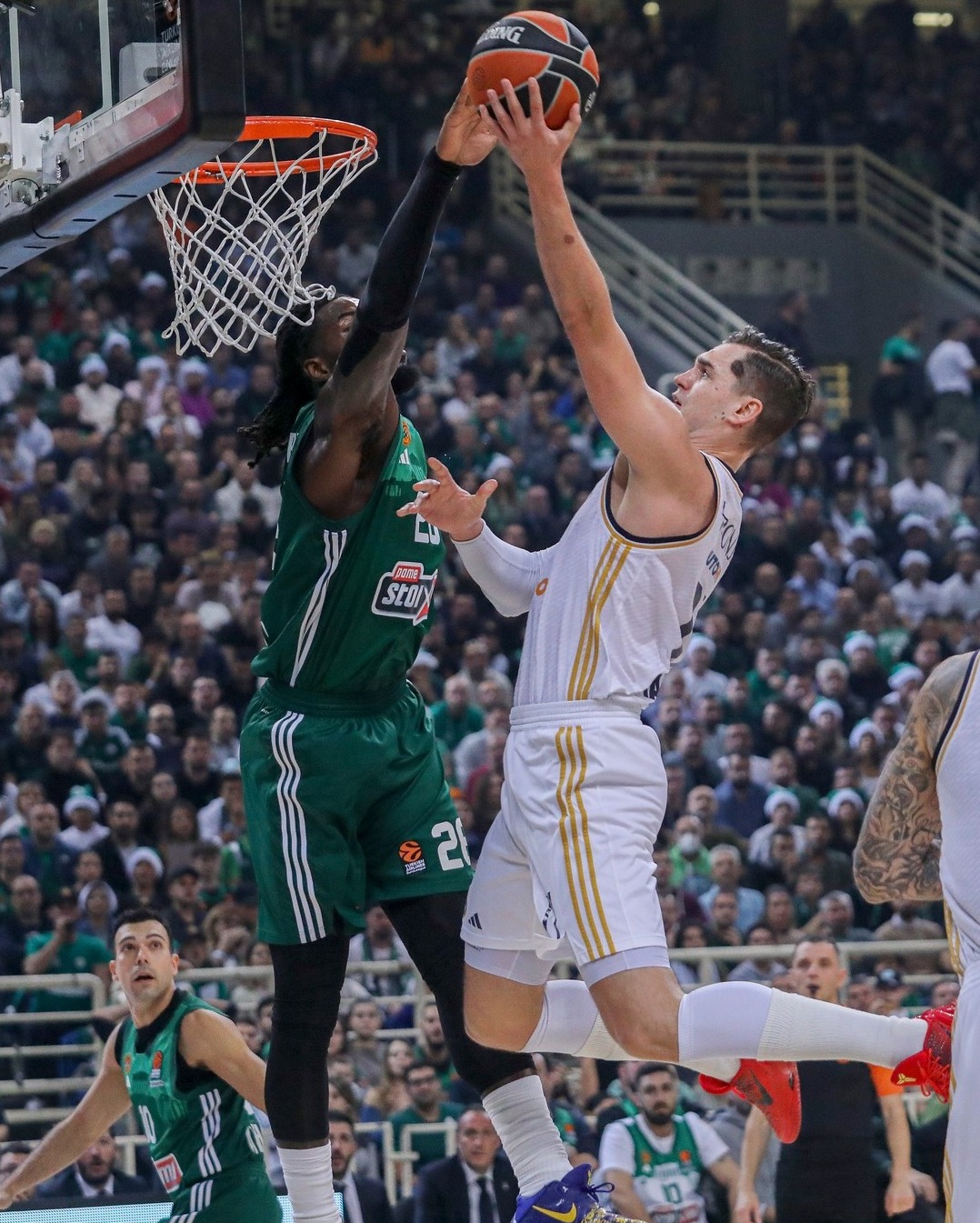 Για 23 λεπτά ο Παναθηναϊκός έδινε »μάχη» με την Ρεάλ όμως από κει και μετά »κόλλησε» στην επίθεση και οι Ισπανοί που δεν άφησαν την ευκαιρία να πάει χαμένη, μετά το ΣΕΦ προχθές, σήμερα »απέδρασαν» με το »διπλό» και από το κατάμεστο ΟΑΚΑ και ολοκλήρωσαν την παραμονή τους στην Αθήνα με δύο μεγάλες νίκες. Μεγάλη εμφάνιση από τον Κέντρικ Ναν με 24 πόντους ενώ από την Ρεάλ που είχε πέντε παίκτες με διψήφιο αριθμό πόντων, κορυφαίος όλων ήταν ο δηλωμένος »πράσινος» και πρώην παίκτης του Παναθηναϊκού, Μάριο Χεζόνια με 19 πόντους.