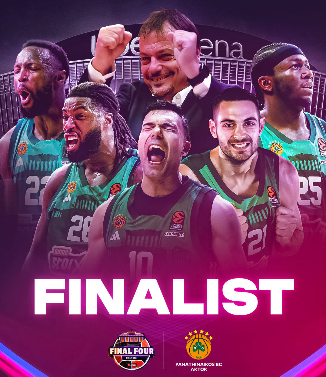 Πραγματοποιώντας εξαιρετική εμφάνιση και έχοντας τα ηνία σε όλο το παιχνίδι ο Παναθηναϊκός AKTOR επικράτησε με 73-57 της Φενέρμπαχτσε στον πρώτο ημιτελικό του φάιναλ φορ της Ευρωλίγκας στο Βερολίνο και πανηγυρίζει την πρόκριση στον μεγάλο τελικό της Κυριακής(26/5) και πάει για το έβδομο »αστέρι» του.