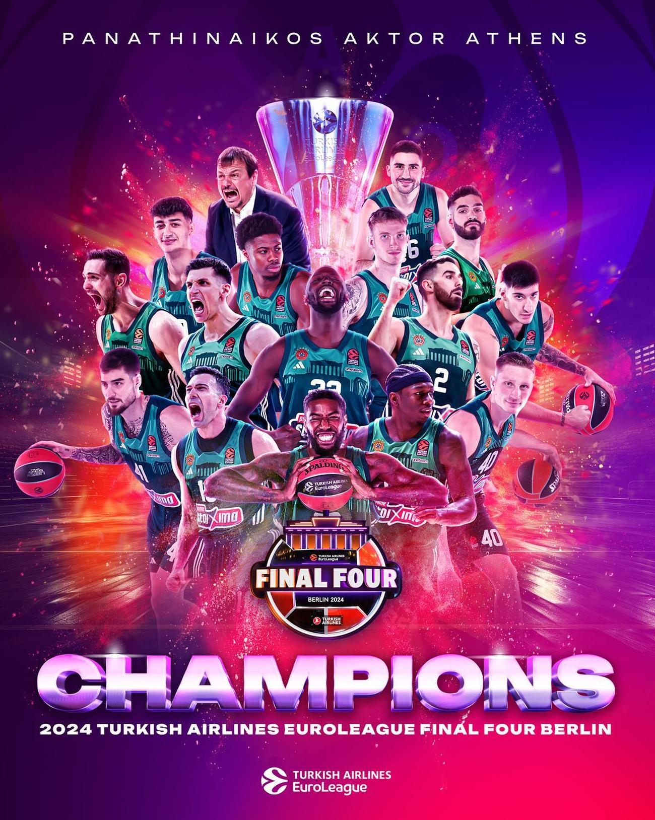 O συγκλονιστικός Παναθηναϊκός AKTOR »κατάπιε» την Ρεάλ στο δεύτερο ημίχρονο και επικρατώντας με 95-80 στον μεγάλο τελικό του φάιναλ φορ του Βερολίνου επέστρεψε στην κορυφή της Ευρώπης πανηγυρίζει το έβδομο ευρωπαϊκό τρόπαιο στην ιστορία του !